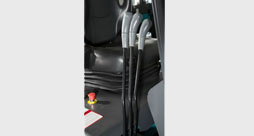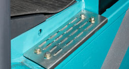 | 融入凯傲元素的结构颗粒漆,具有不反光、易修补等特点。 | 加大型上车踏板,具有舒适性和防滑性。 | 配备急停开关,用于紧急情况下瞬间切断整车电源,确保人员安全。 |